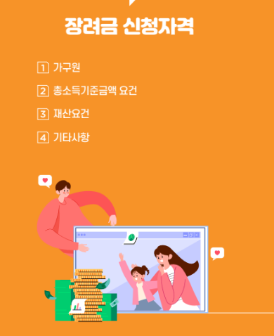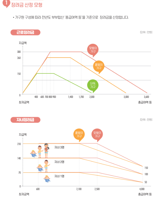 - 재산 합계액이 1.7억 원 이상 2.4억 원 미만인 경우, 장려금 지급액의 50%가 감액됩니다.